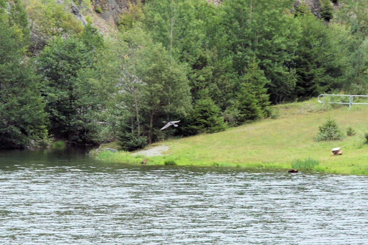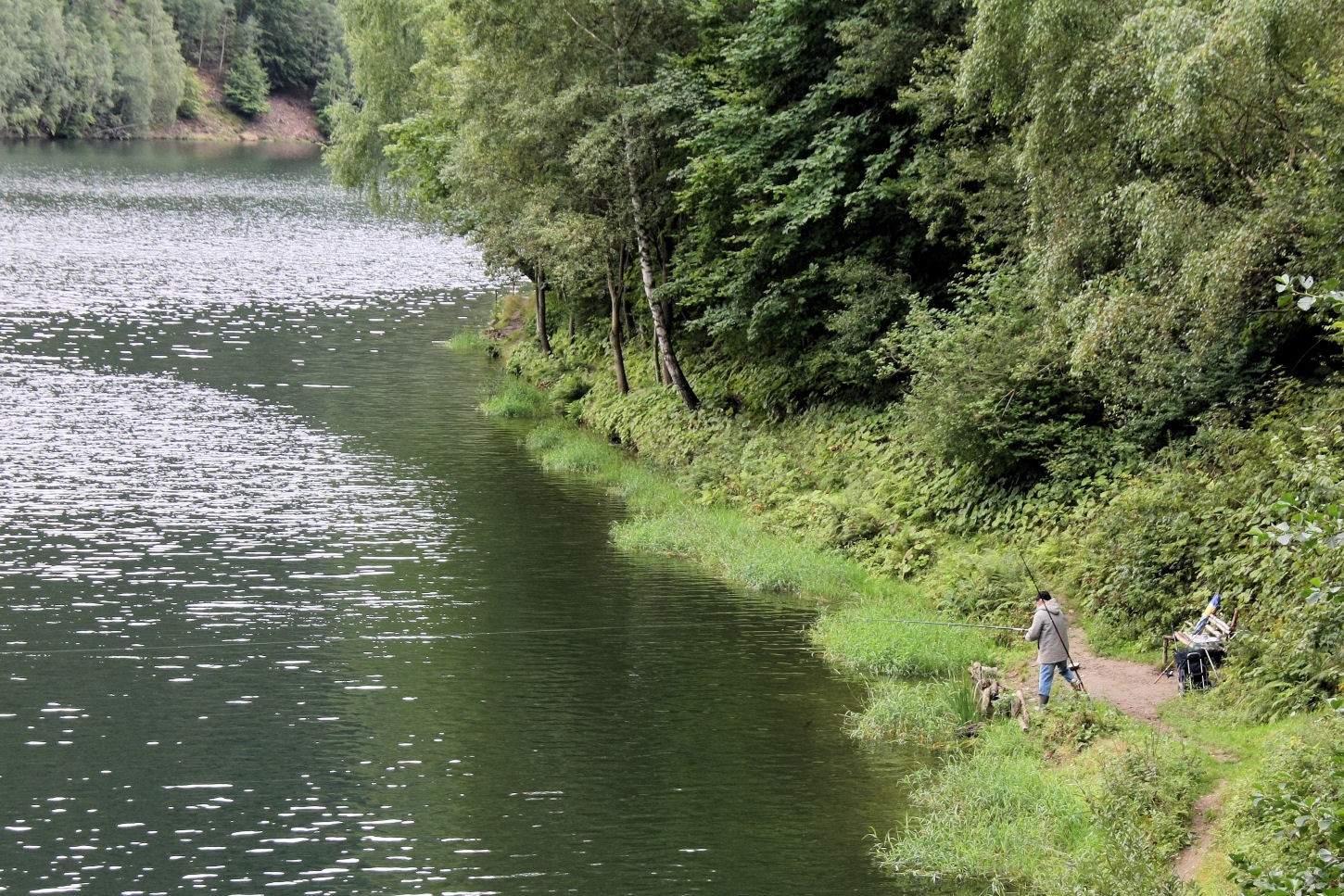 Der Angler – der natürliche Feind des Kormorans. Die Talsperre Deesbach ist Angelgewässer (im Gegensatz zu Leibis/Lichte)
