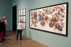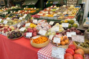 Am Abreisetag schauten wir uns noch die Ausstellung „Flowers Forever – Blumen in Kunst und Kultur“ in der Kunsthalle München an. Die Installation Calyx von Rebecca Louise Law muss man gesehen haben. Bis zur Abreise mit dem Zug am frühen Nachmittag blieb noch Zeit für einen Bummel über den Viktualienmarkt und einen Aufstieg auf den Turm vom Alten Peter.