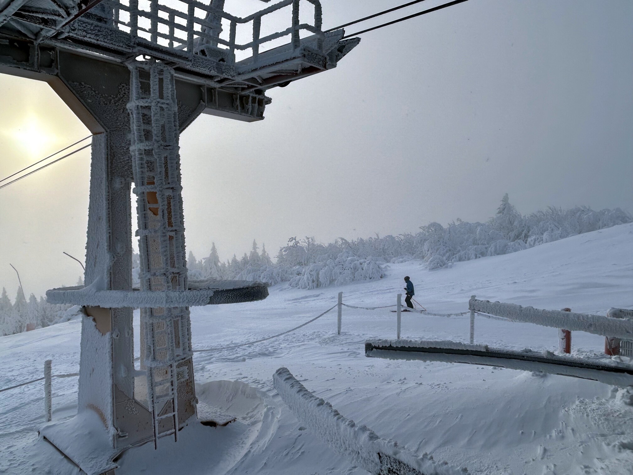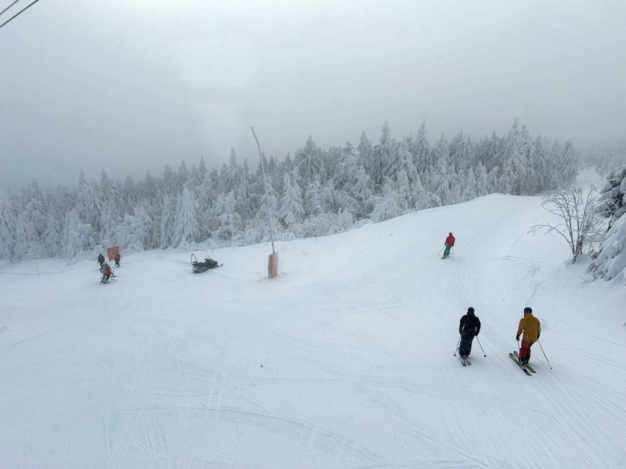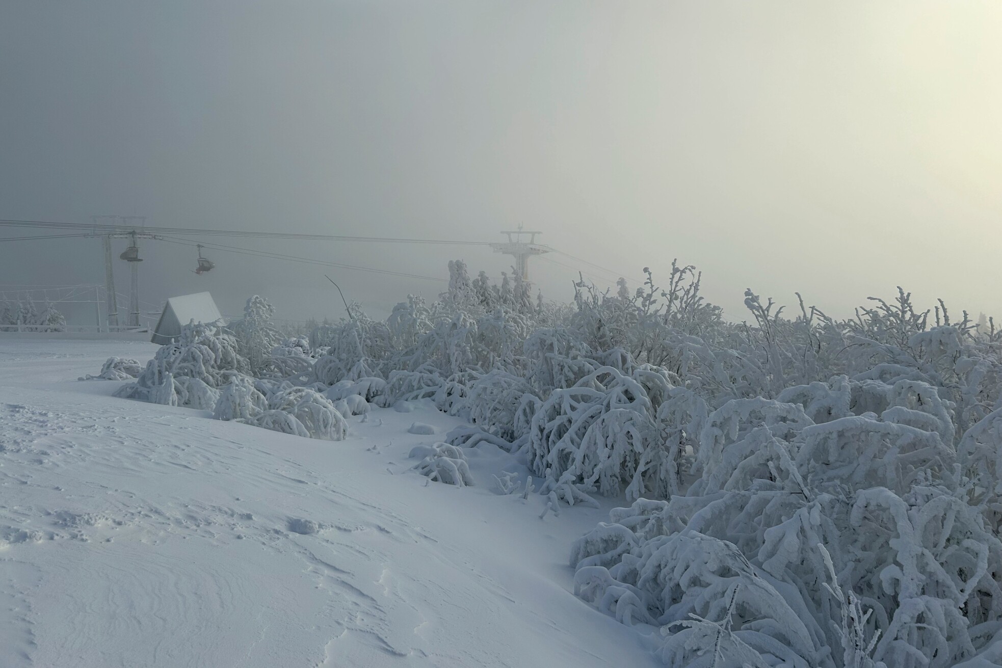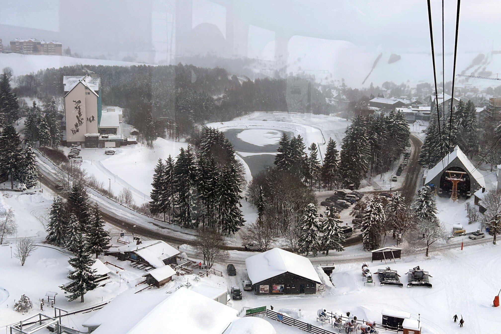 Am Mittwoch, unserem Abreisetag, wurde die Skisaison in Oberwiesenthal eröffnet. Mit der ersten Seilbahn fuhren wir zum Gipfel. In der Bahn waren eine handvoll Wintersportler, aber keine weiteren Touristen. Im Gegensatz zum Montag hatten wir den Gipfel für uns allein. Der Sessellift zum Gipfel war schon gut ausgelastet.