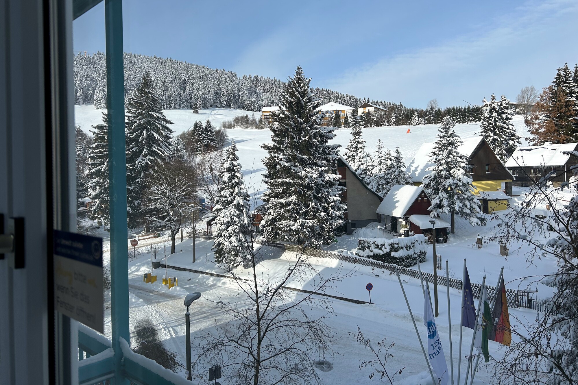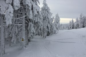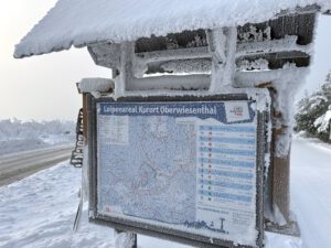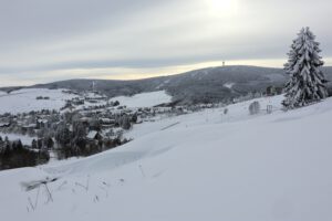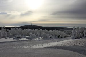 Am Montag hatten wir traumhaftes Winterwetter mit Sonnenschein bei -7 °C. Da die Seilbahn nicht fuhr, sind wir mit der Stadtbuslinie auf den Fichtelberg gefahren. Zurück ging zu Fuß auf dem „Fußgängerschutzweg“. Am Nachmittag machten wir einen Stadtbummel durch Oberwiesenthal mit einen Besuch im Café König.