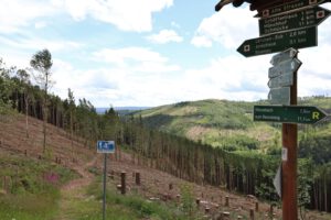 Thüringen entdeckt Unterwegs Ilmenau – Hohe Warte – Elgersburg Veröffentlicht am 16. Juni 2024-Aktualisiert 25. Dezember 2025 Heidelbeeren sind in diesem Jahr eher rar Auf dem Goethewanderweg Oberhalb des oberen Berggrabenwegs Blick nach Manebach Auf zum Schwalbenstein Trail Toleranz? Schutzhütte auf dem Schwalbenstein Schutzhütte auf dem Schwalbenstein Blick nach Manebach Schutzhütte am Steiger Eck Der Carl-Eduard-Turm auf der Hohen Warte Leckere Heidelbeertorte Gasthaus Hohe Warte Ausstellung im Inneren des Turms Blick in Richtung Gotha und Crawinkel, im Vordergrund Geschwenda und Gräfenroda Blick in Richtung Erfurt, im Vordergrund Geraberg mit der Geratalbrücke der A71 Handypanorama mit Blick vom Gotha bis zum Ettersberg bei Weimar Am Piuttifels Schadholzflächen öffnen neue Blickachsen An der Luisenquelle Der Borkenkäfer macht dem Forst viel Arbeit Schloss Elgersburg Bahnhof Elgersburg 11 km leichte Wanderung